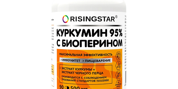 Экстракт куркумы с биоперином, РАЙСИНГСТАР, капсулы, 90 штБАД Куркумин, природный антиоксидант, биологически активная пищевая добавка к основному рациону современного человека. Исследования показали, что биоперин (экстракт черного перца) помогает улучшить усвоение куркумина в кишечнике и печени в 20 раз. ПОЧЕМУ ВАЖНО ПРИНИМАТЬ КУРКУМИН С БИОПЕРИНОМ?