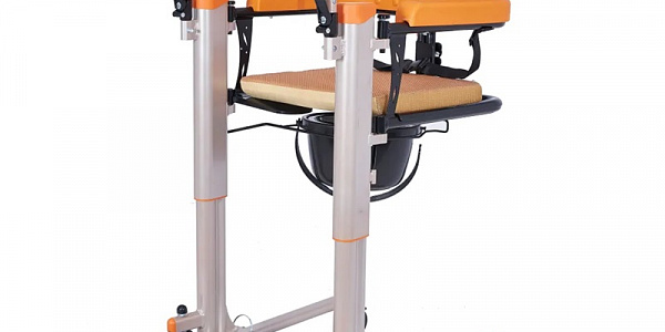 Посадочная платформа изготовлена из стального листа и пластиковой накладки.Сиденье изделия комплектуется съемной подушкой с наполнителем из ППУ средней плотности и съемным чехлом на молнии. Сиденье изделия комплектуется фиксирующим ремнем для пациента. Спинка сиденья и подлокотники изготовлены из плотного полиуретана.