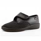 Верх полуботинок регулируется по полноте ноги с помощью удобных застежек «велкро». Эластичная «гофрированная» верхняя часть мягко облегает стопу, принимая ее форму и не оказывая давления на проблемную область. Перфорированная съемная стелька анатомической формы правильно распределяет нагрузку на стопу. Базовые стельки в полуботинках при необходимости можно заменить на лечебный супинатор, в том числе индивидуального изготовления. Противоскользящая подошва из ПВХ добавляет устойчивости.